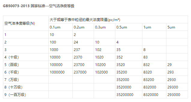 空氣潔凈度等級(jí)(air cleanliness class):潔凈空間單位體積空氣中,以大于或等于被考慮粒徑的粒子最大濃度限值進(jìn)行劃分的等級(jí)標(biāo)準(zhǔn)。國(guó)內(nèi)按空態(tài)、靜態(tài)、動(dòng)態(tài)對(duì)無塵車間進(jìn)行測(cè)試、驗(yàn)收,符合《GB50073-2013 潔凈廠房設(shè)計(jì)規(guī)范》、《GB50591-2010 潔凈室施工及驗(yàn)收規(guī)范》。